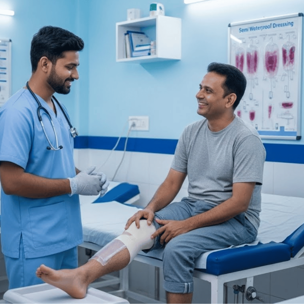 Our experienced healthcare professionals ensure safe, hygienic, and comfortable semi-waterproof dressing at home or clinic, based on the patient’s condition.